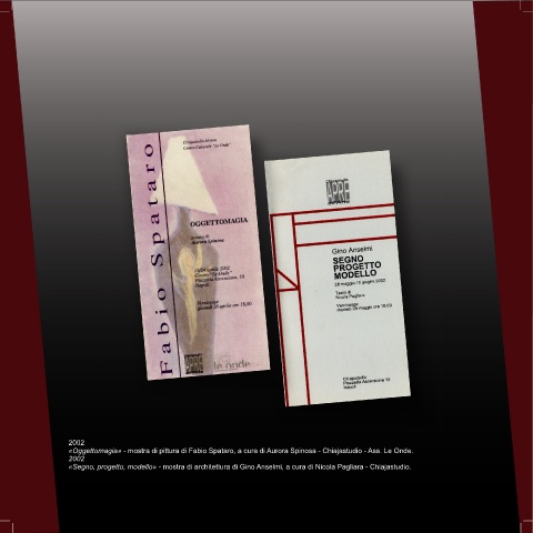 2002 «Oggettomagia» - mostra di pittura di Fabio Spataro, a cura di Aurora Spinosa - Chiajastudio - Ass. Le Onde. 2002 «Segno, progetto, modello» - mostra di architettura di Gino Anselmi, a cura di Nicola Pagliara - Chiajastudio.