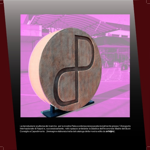 La riproduzione scultorea del marchio per la mostra Paleocontemporanea posta inizialmente presso l’ìAreoporto